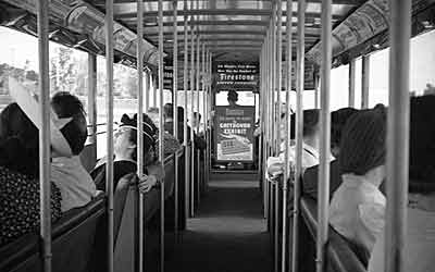 A single Model 745 Sleeper Coach prototype was constructed in 1937 for Greyhound. Based on the Model 743, the 745 featured a slightly raised roof-line necessitated by large overhead compartments used to house the mattresses and bedding. Removable tray tables and panels located in-between adjacent seat-backs were pulled out and rearranged to create the two-tiered berths which were constructed in every other row, allowing 20 passengers to sleep while the remaining 10 passengers remained seated. The intricate system proved untenable and Greyhound shelved future plants for the reintroduction of sleeper service. It is assumed the single Model 745 was retrofitted with a 743-style permanent seating and placed into regular service. Although similar to the Intra-Mural coaches found at the 1933-34 Chicago World's Fair, the Greyhound-badged sightseeing coaches used at Cleveland, Ohio's 1936-1937 Great Lakes Exposition were not built by Yellow Coach. Appropriately, Cleveland based firms were hired, Bender Body Co. made the 45-passenger streamlined trailers and White furnished the tugs, which were stock 1936 Model 740T truck-tractors. A major organizational change occurred on September 30, 1936, when the General Motors Truck Corporation was dissolved. At that time Yellow Truck & Coach Mfg. Co., previously a holding company only, assumed manufacturing responsibilities for all of General Motors Corporation built commercial vehicles (trucks, tractors, trailers, taxicabs, and buses) with the exception of Chevrolet, whose truck manufacturing operations were still separate from GMC's, although both firms had shared some truck cabs and sheet metal as early as 1931. Yellow Truck & Coach Mfg. Co.'s sales organization, the General Motors Truck Co., was dissolved two months later (November 30, 1936) and its operations assumed by a new firm, the General Motors Truck & Coach Division of Yellow Truck & Coach Mfg. Co. The trolleybus boom of the late 20s-early 30s occurred in part due to the escalating cost of track maintenance coupled with a notable decrease in ridership on outlying routes. The 1931 Model 701 trolley coach was fitted with seating for 44 and although it looked similar in appearance to an All-Service, it was constructed without an engine or generator. Much more popular was the firm's All-Service coach which offered customers a hybrid-powered system that could be used on any route, regardless of whether an overhead grid was available or not. Driven by two large electric motors located in front of the rear wheels, power could be supplied by the overhead electric grid via trolley poles or by an integral generator powered by a gasoline (Model GE) or diesel (DE) engine. The first Yellow Coach identified as an All-Service model was the Z-AL-265, constructed sometime in the early 1930s. Between 1935 and 1937, 357 Model 729 All-Service coaches were constructed for the Public Service Coordinated Transport Corp of New Jersey. Other buyers of Yellow All-Service coaches included Flint, Michigan (46 - 1936 Model 737 coaches) and Milwaukee, Wisconsin (40 Model 1208 coaches). Flxible in Loudonville, Ohio had developed a smaller bus known as the Airway which was economical to operate and became popular with smaller operators. In 1937, it was redesigned with a flat front and in 1938 emerged as the first of the Clipper series with a straight in rear engine. The new Clipper was an immediate hit with the smaller operators and was purchased by larger operators, including Greyhound, for smaller routes. Introduced in 1938 Yellow Truck & Coaches' Model 1200 series was a short-lived series produced between 1938 and mid-1940 when most of the coaches were assigned new numbers that fit the new alphanumeric Model scheme. Model 1203, the first of the series, was a re-designation of the 27-passenger Model 739 built expressly for the Public Service Corp. of New Jersey. The second series 1200, the Model 1204, was a 24 passenger rear engine transit bus built with a transverse-mounted Chevrolet engine that was re-designated Model TG-2401. The 1205 was a re-designation of the 37-passenger Model 740 (transit) and 742 (parlor) coaches. The 1206 was a single prototype 37-passenger Greyhound Silversides Super Coach. Once it entered production in 1940, it had been reclassified as the PD/PG-3701 or PDG/PGG-3701 when adorned with Greyhound livery. The 1208 was a 41-passenger trolleybus with built in DC Motors and roof-mounted trolley poles expressly constructed for the Milwaukee Electric Railway & Light Company, who purchased 40 examples. It was the last series of dedicated trolleybuses constructed. The 1209 was a 25 passenger rear engine parlor coach built nicknamed the "Cruiserette" and re-designated PD/PG-2901, -2902, -2903 and -2904. Introduced in 1939 the 1210 was a 37-passenger parlor coach similar in size and mechanics to the 1206 prototype. After 46 units had been built it was superseded by the models PD/PG-3701. The 29 passenger Model 1213 replaced the model 724 parlor coach and was subsequently re-designated Model PD/PG-2901. Midway through 1939 it was decided to replace the numeric Model 1200 Series nomenclature with a more descriptive alpha-numeric system that remained the standard until the firm ended bus production in 1987. The first letter, either T (for transit coaches), or P (for parlor coaches - aka intercity or cross-country coaches) referred to the bus type. The second letter, either G (for gasoline), D (for Diesel), or EG (electric-gas) or ED (electric-diesel), referred to how the coach was powered. The next two digits indicate seating capacity (27, 33, 37, 40 etc.). The next two digits indicate a model's chronology within the series (01, 02, 03, 04 etc.). So a Model TD-4501, designates a transit coach, powered by a diesel engine, with seating for 45, of which it was the first in the series. Surprisingly General Motors didn't begin to work on a diesel engine until the mid-thirties, when they equipped 27 Model 729 All-Serv
